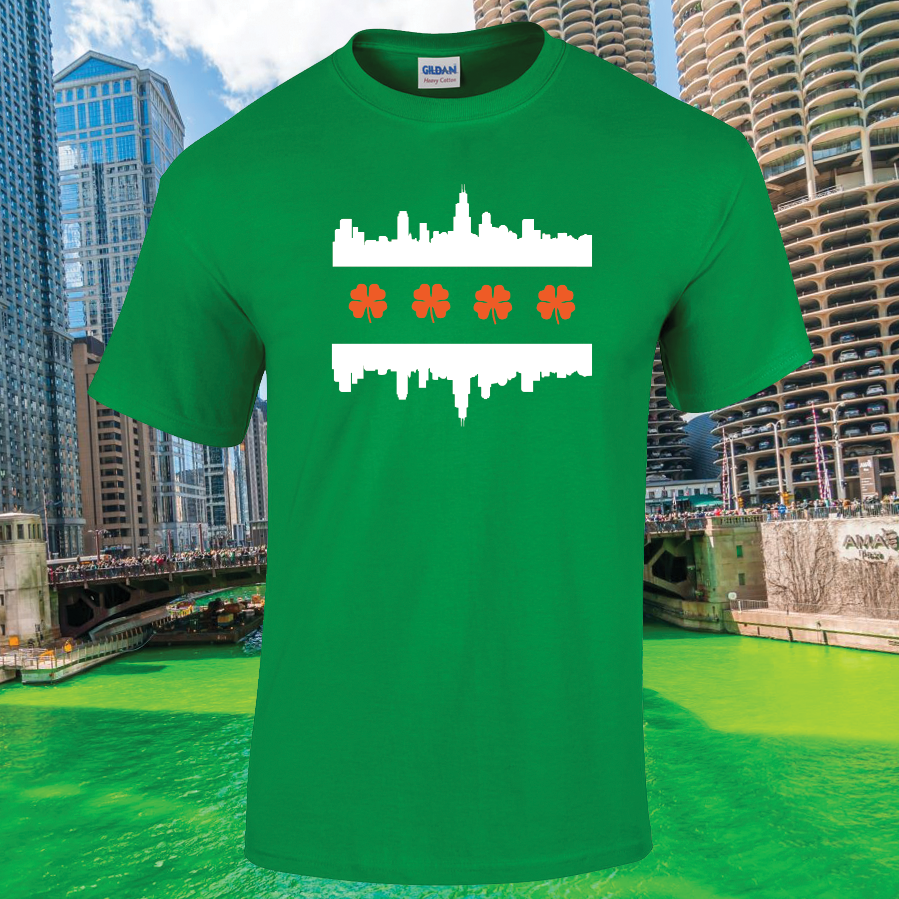 Green Chicago Shamrock Flag Irish St. Patricks Day T-Shirt